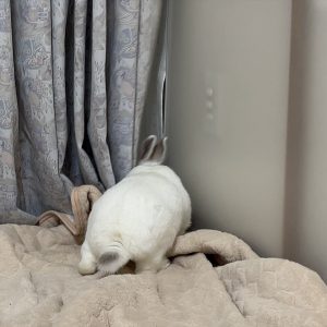 ケージの隅っこに籠城していたふぶきちゃんは