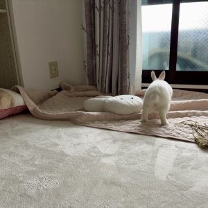 (続)ノリノリ★ホリホリ ふぶき 2025.04.11 ふぶき うさぎクッションへのホリホリ遊びがまだブーム中です ニ●リで買ったこのクッション、中綿はぷにぷにした感触で生地がジャージっぽくてよく伸びるのでさすがのうさぎの歯もたたず、「ムキーッ」となりながらずっとホリホリしています 一生懸命で可愛い 遊んでいるところを見ててほしい派なので「ねぇ、いまの見てた?」って最後にこっちを見てニヤリとするのも可愛い キメのポーズ 個別お見合い受付中ふぶきちゃんのホリホリ遊びをリアルで見たいひといませんか~