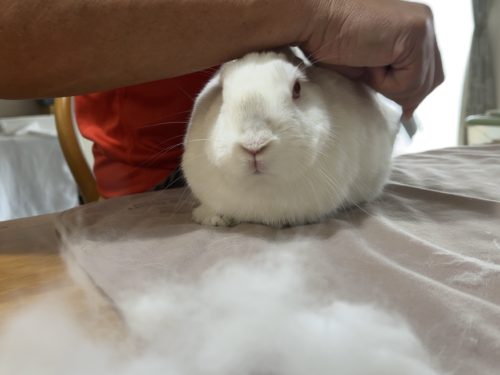 15日の「保護うさぎさんに逢おうの会」の前にもう一回ブラッシングしますよー