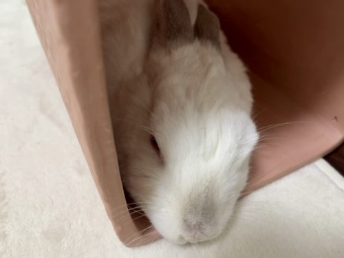 ケージの隅っこで丸まって